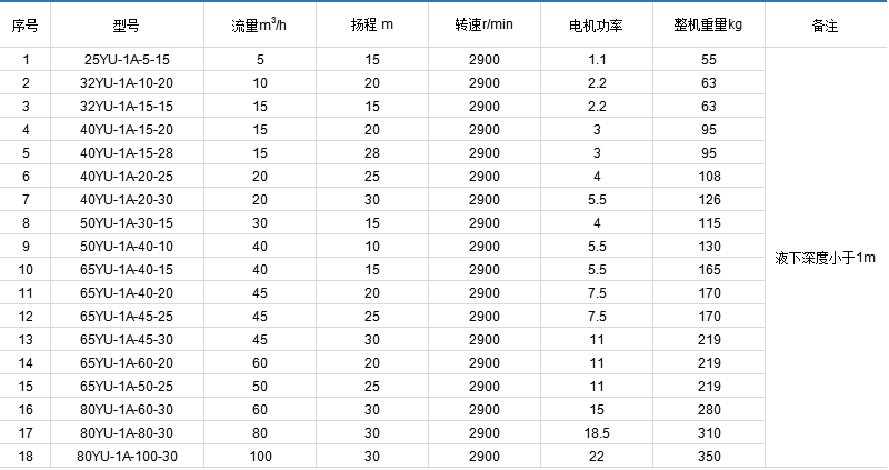 YU-1A型手提式液下泵是在YU-1型的基礎(chǔ)上改進(jìn)而成的,其過流部件既有用超高分子量聚乙烯(UHMWPE)整體模壓而成的,也有用增強(qiáng)聚丙烯整體注塑而成的。該泵與YU-1泵的明顯區(qū)別在于,將電機(jī)軸承與泵軸間加了聯(lián)軸器,增強(qiáng)了泵頭運(yùn)轉(zhuǎn)的穩(wěn)定性,也給用戶的維修提供了方便。 價格較經(jīng)濟(jì),穩(wěn)定性好,無泄漏之憂,液下深度≤1m 。 一般稀酸、稀堿等腐蝕性,磨蝕性介質(zhì)的低位輸送。