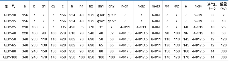 本廠生產(chǎn)的QBY系列氣動(dòng)隔膜泵是一種新型輸送機(jī)械,是目前國(guó)內(nèi)最新穎的一種泵類。采用壓縮空氣為動(dòng)力源,對(duì)于各種腐蝕性液體,帶顆粒的液體,高粘度、易揮發(fā)、易燃、劇毒的液體,均能予以抽光吸盡。 本廠目前已形成系列化生產(chǎn),共有八種規(guī)格直徑: Φ10mm(3/8)、Φ15mm(1/2)、Φ25mm(1)、Φ40mm(3/2)、Φ50mm(2)、Φ65mm(5/2)、Φ100mm(4)。 四種材質(zhì),鋁合金、鑄鐵、不銹鋼、工程塑料。隔膜泵根據(jù)不同液體介質(zhì)分別采用丁晴橡膠、氯丁橡膠、氟橡膠、聚四氟乙烯。以滿足不同用戶的需要。 該泵以被國(guó)內(nèi)石油、化工、電子、陶瓷、紡織系統(tǒng)單位廣泛采用,安裝在各種特殊場(chǎng)合,用來抽送各種常規(guī)泵不能抽吸的介質(zhì),均取得了滿意的效果。