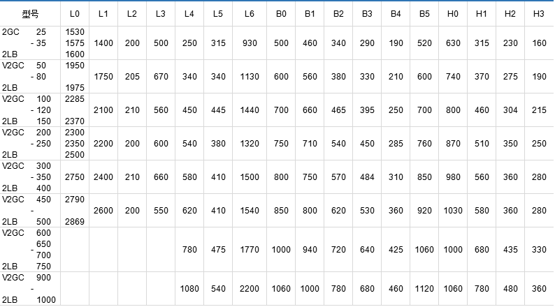 ◆ 2LB和2GC — 表示臥式雙螺桿泵
