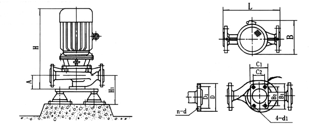 1、泵為立式結(jié)構(gòu),進(jìn)出口口徑相同,且位于同一中心線上,可像閥門一樣安裝于管路之中,外形緊湊美觀,占地面積小,建筑投入低,如加上防護(hù)罩則可置于戶外使用。