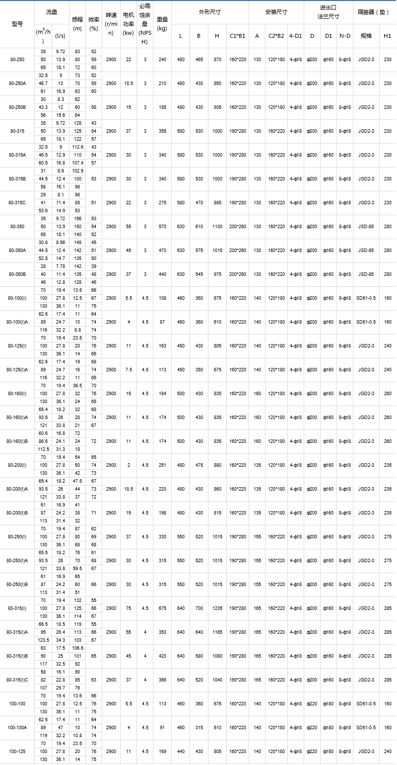 4、IHG型立式管道化工泵,供輸送不含固體顆粒,具有腐蝕性,粘度類似于水的液體,適用于石油、化工、冶金、電力、造紙、食品制藥和合成纖維等部門,使用溫度為-20°C~120°C。